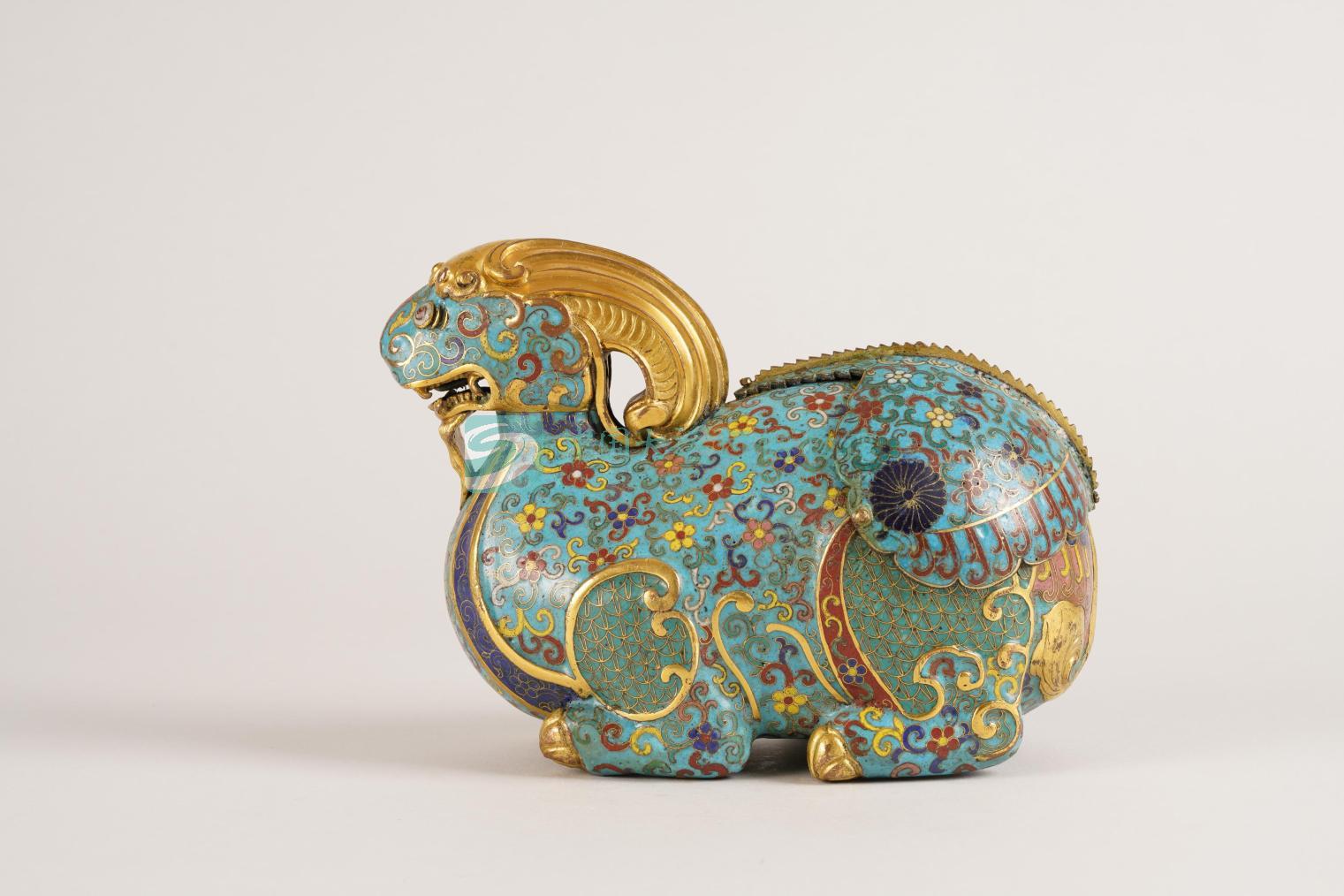 清“乾隆年制”款掐丝珐琅缠枝花卉鎏金羊形尊