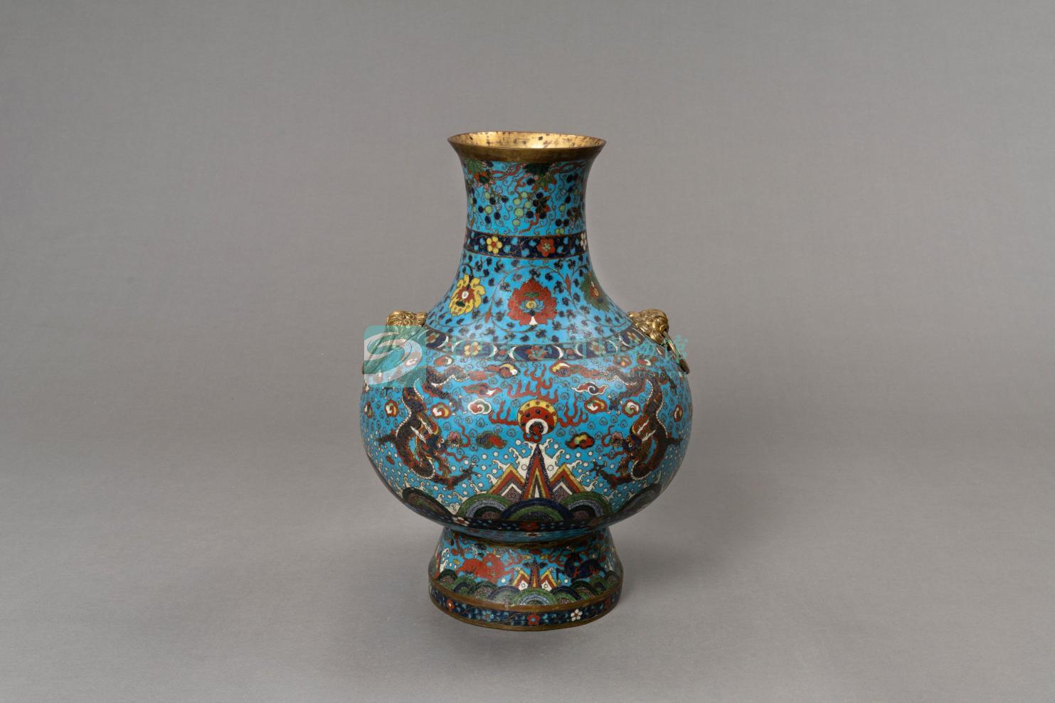 清早期掐丝珐琅双龙戏珠纹双耳壶