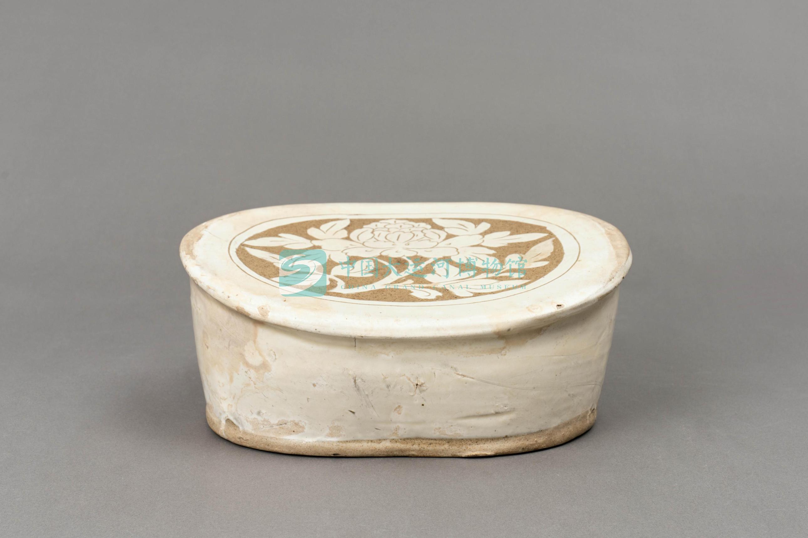 金磁州窑白釉剔花牡丹纹枕