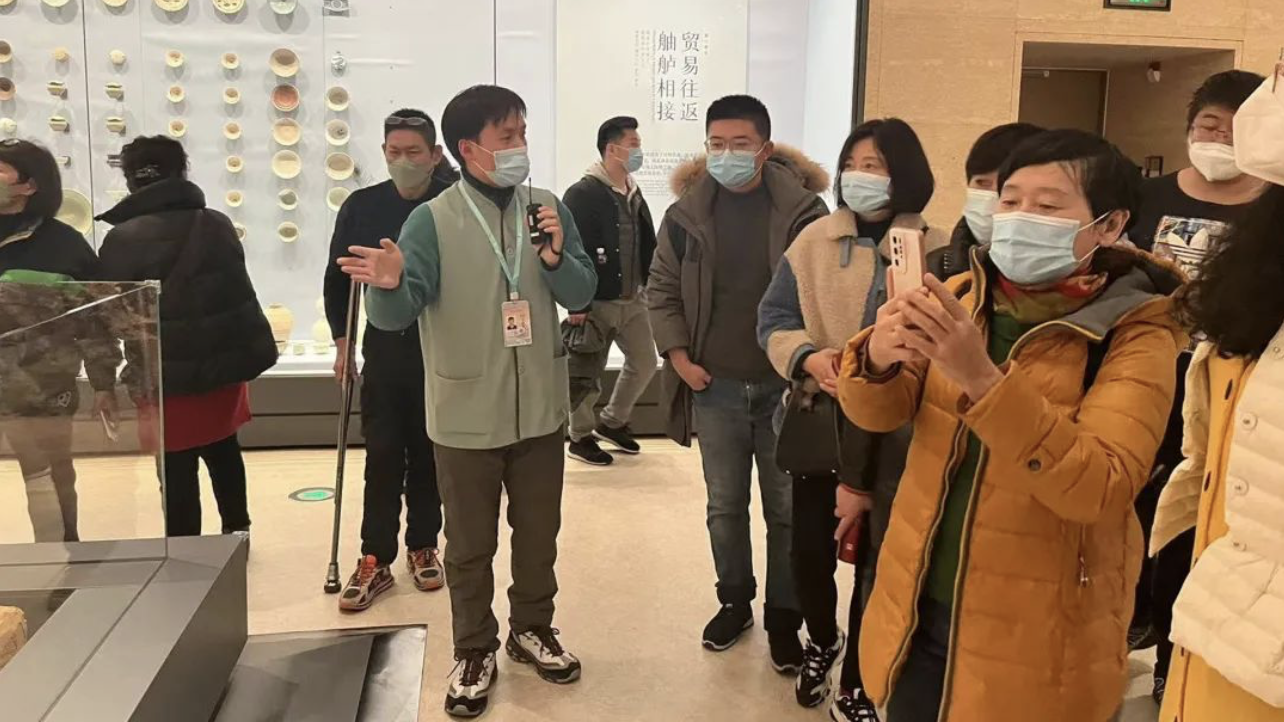在中国大运河博物馆里,随处可见众多身穿绿色马甲、手持引导牌的身影,耐心地倾听回答观众的问题,笑容亲切、服务专业,他们就是“锦帆”志愿者团队。