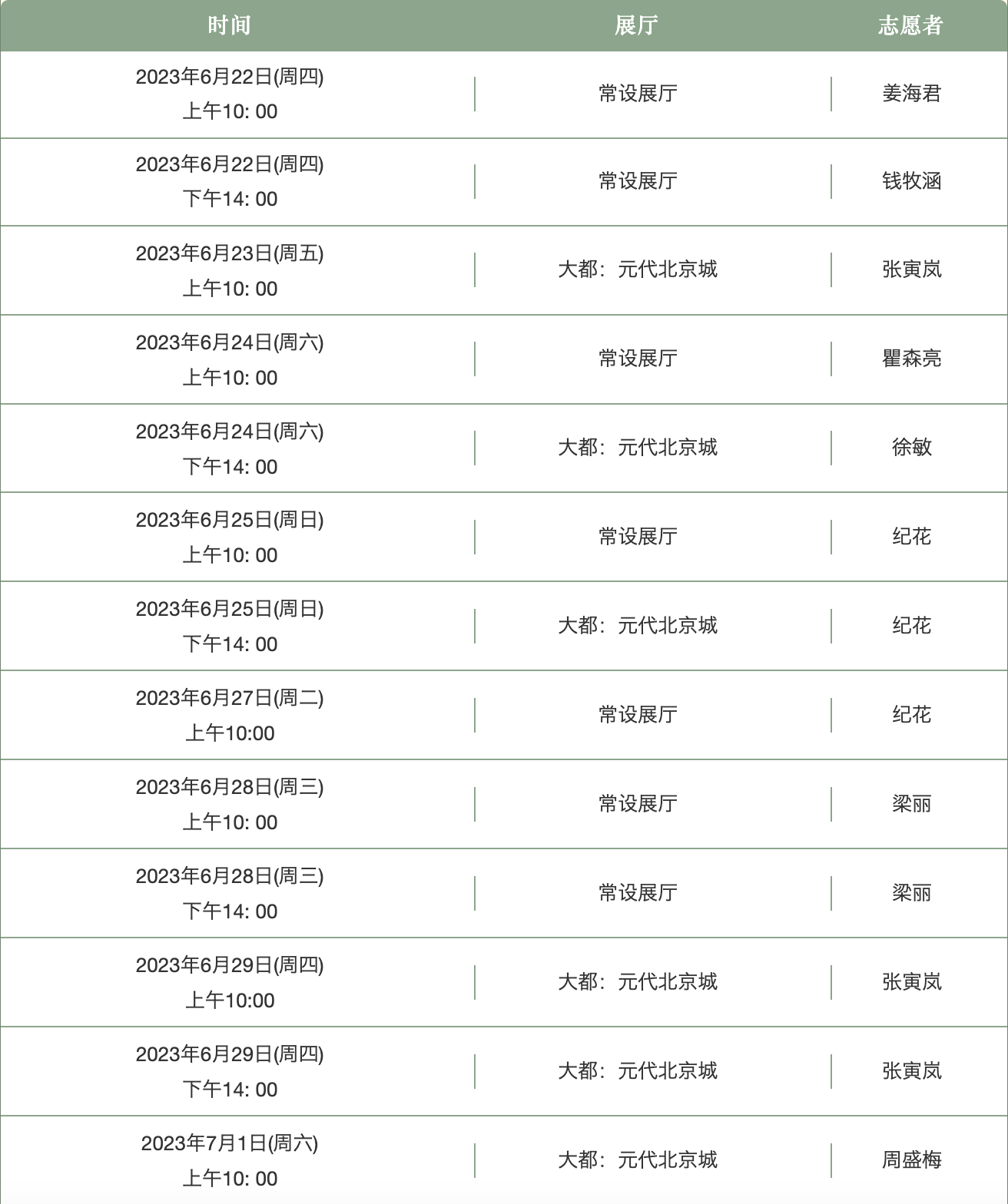 志愿者定时讲解安排
